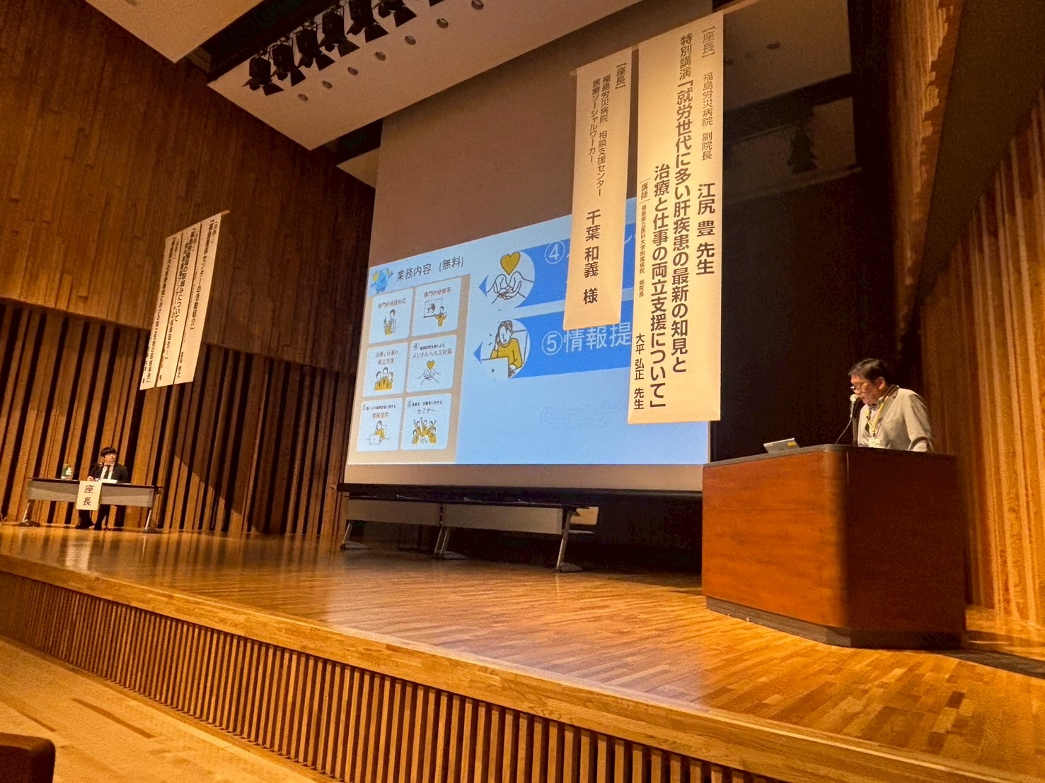 令和7年10月3日(金)にメグレズホール(星総合病院敷地内、郡山市向河原町159-7)において、 福島産業保健総合支援センター主催「治療と仕事の両立支援セミナー」が開催されました。 当院職員の江尻豊副院長が特別講演の座長を、千葉和義医療ソーシャルワーカーがシンポジウムの座長をそれぞれ務めました。 シンポジウムにおいては、両立支援を巡る現状及び課題等について意見交換が行われました。
